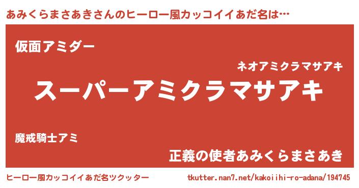 | 男性向けラノベタイトル風あだ名 | 『アミクラマサアキアートオンライン』 |