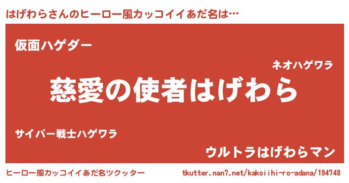 | 女子向けラノベタイトル風あだ名 | 『死神はげわらの再婚』 |