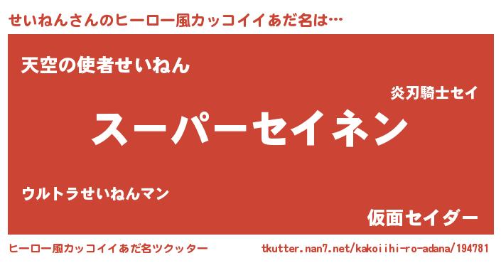 せいねんさんのヒーロー風カッコイイあだ名をツクッター!