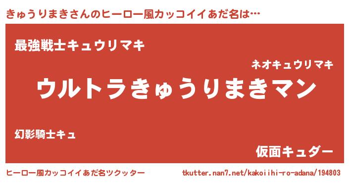 | 意味不明あだ名 | 『ヨモギ科きゅうりまき属』 |
