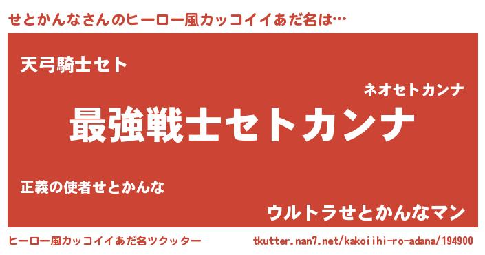 | 男性向けラノベタイトル風あだ名 | 『うちのせとかんなが世界を掌握している!』 |