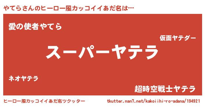 | 胡散臭い通販商品みたいなあだ名 | 『億万長者になれる水晶球…その名も「やてら」』 |