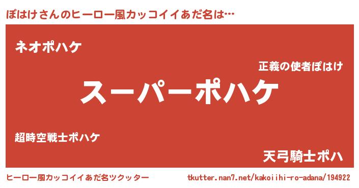 | 男性向けラノベタイトル風あだ名 | 『はたらくぽはけさま!』『ぽはけの憂鬱』 |