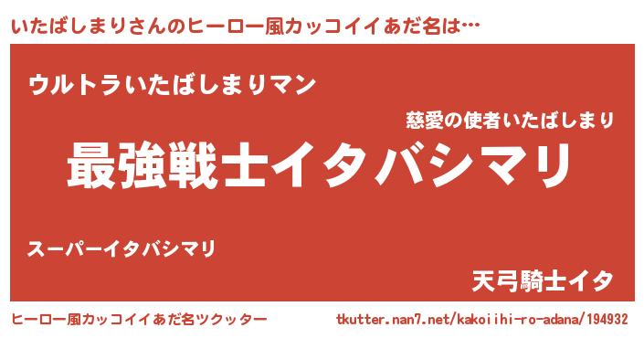 | 胡散臭い通販商品みたいなあだ名 | 『テレビで話題の高麗人参…その名も「いたばしまり」』 |