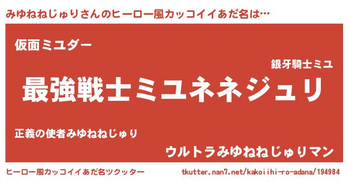 | 伝説のあだ名 | 『最強の忍者みゆねねじゅり』 |