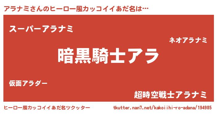 | 男性向けラノベタイトル風あだ名 | 『アラナミスレイヤー』『アラナミの憂鬱』 |