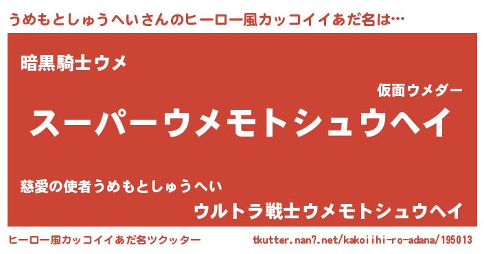 | 男性向けラノベタイトル風あだ名 | 『うめもとしゅうへいの憂鬱』 |