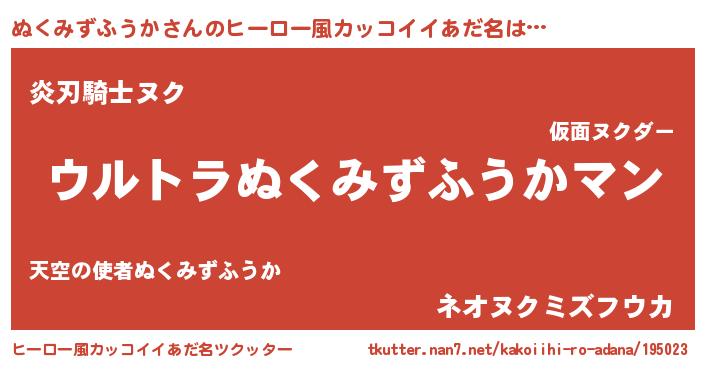 | 意味不明あだ名 | 『ぬくみずふうかフォーエバー』 |