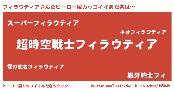 | 意味不明あだ名 | 『自称フィラウティア』 |