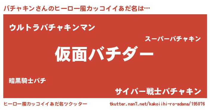 | 男性向けラノベタイトル風あだ名 | 『この素晴らしい世界にバチャキンを!』 |