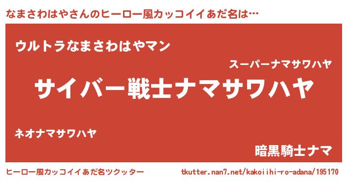 | 肩書あだ名 | 『なまさわはや総統』『なまさわはや塾長』 |