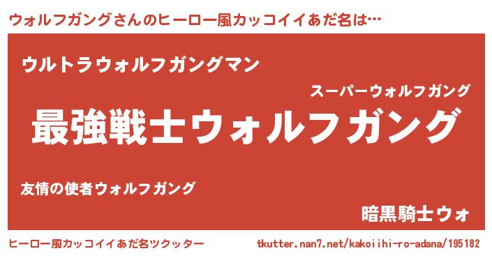 | 男性向けラノベタイトル風あだ名 | 『Re:ウォルフガングから始める異世界生活』 |