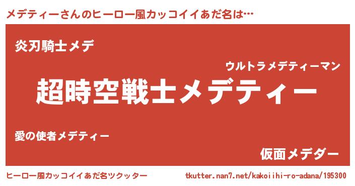 | 女子向けラノベタイトル風あだ名 | 『メデティーなんてお断りですっ。』 |