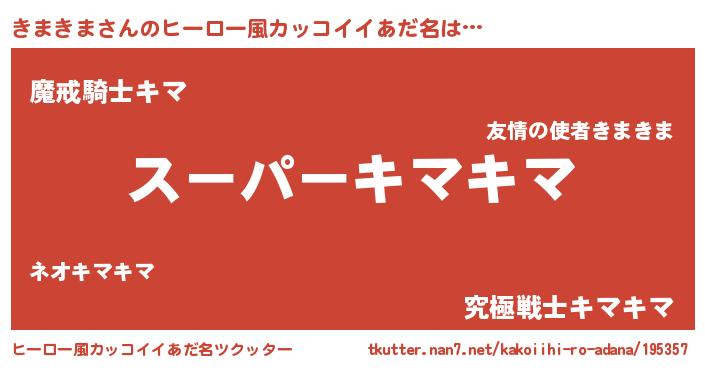 きまきまさんのヒーロー風カッコイイあだ名をツクッター!