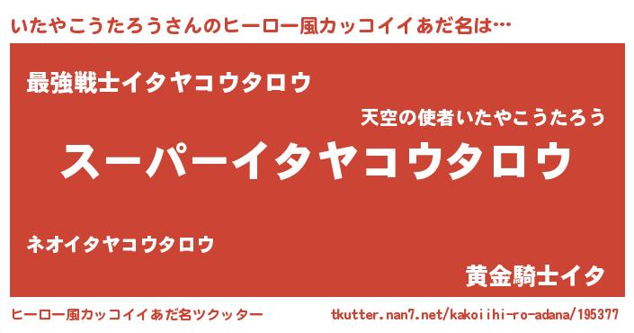 | 男性向けラノベタイトル風あだ名 | 『はたらくいたやこうたろうさま!』 |