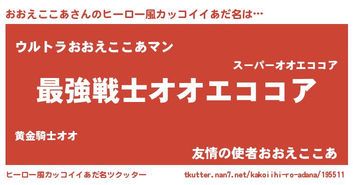 | 欧米人風あだ名 | 『おおえここあ・ステッグマイヤー』 |