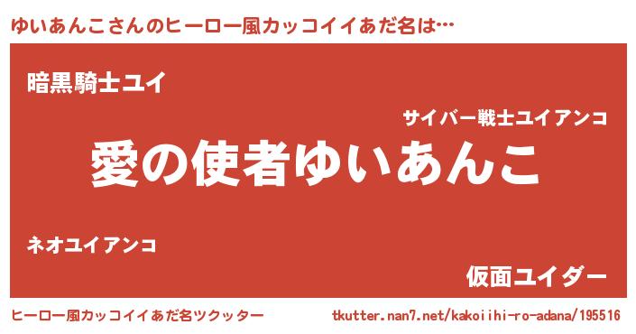 | ポケモン風あだ名 | 『ユックウザ』『ヒユイアンコ』 |
