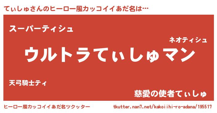 | 意味不明あだ名 | 『てぃしゅフォーエバー』 |