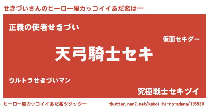 | 女子向けラノベタイトル風あだ名 | 『せきづいの玉の輿計画!』 |