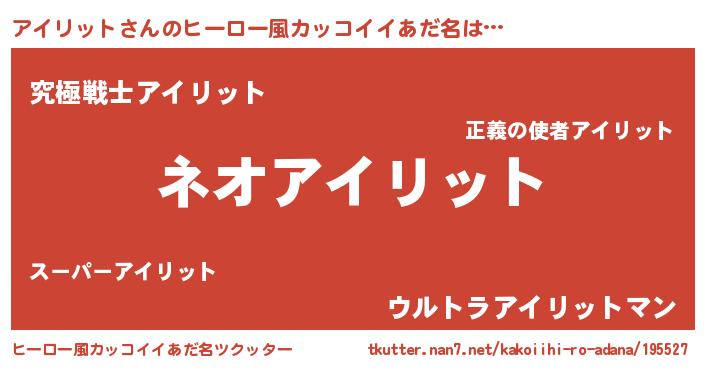 | 意味不明あだ名 | 『永久保存アイリット』『自称アイリット』 |