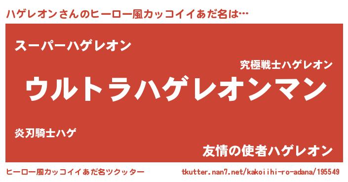 | ファンタジー風あだ名 | 『エターナルハゲレオンー』『ハゲフェル』 |