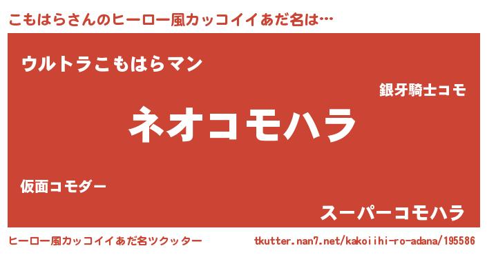| 胡散臭い通販商品みたいなあだ名 | 『来世でも幸せになれる水素水…その名も「こもはら」』 |