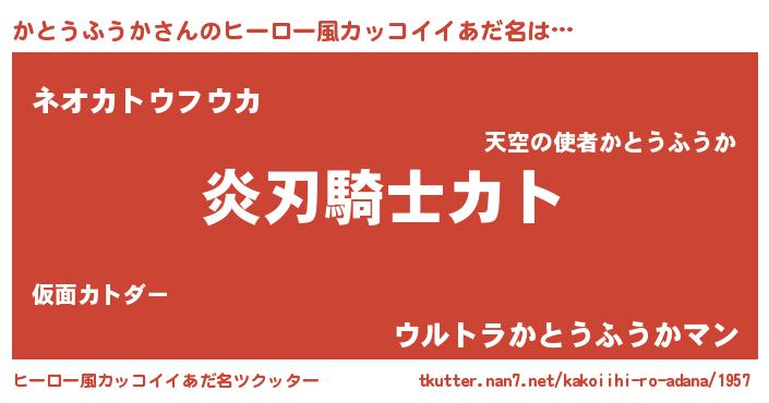 | 意味不明あだ名 | 『とにかく怪しいかとうふうか』 |