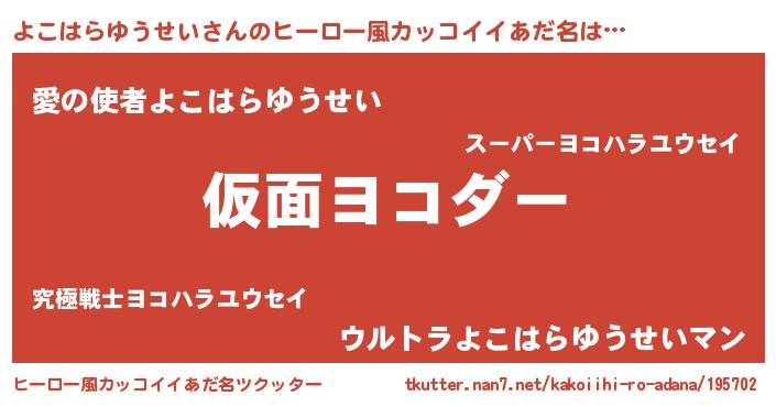 | 意味不明あだ名 | 『住所不定無職よこはらゆうせい(9歳)』 |