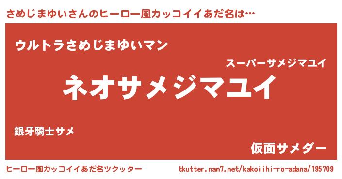 | 意味不明あだ名 | 『永久保存さめじまゆい』 |