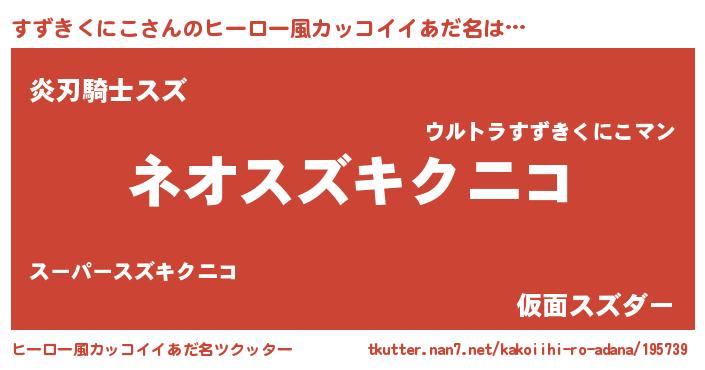 | 男性向けラノベタイトル風あだ名 | 『すずきくにこという概念が存在しない退屈な世界 』 |
