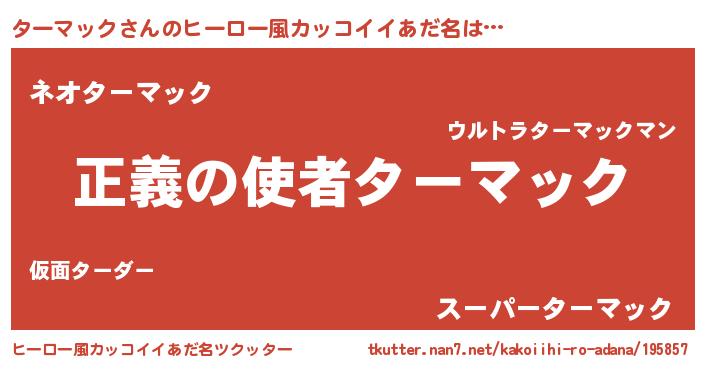 | 男性向けラノベタイトル風あだ名 | 『おまえをオタクにしてやるから、俺をターマックにしてくれ! 』 |
