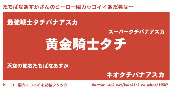 | ポケモン風あだ名 | 『ヒタチバナアスカ』『タチセウス』 |