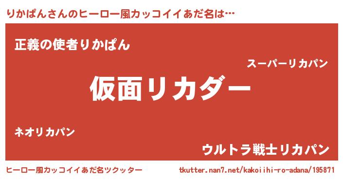 | 男性向けラノベタイトル風あだ名 | 『この素晴らしい世界にりかぱんを!』 |