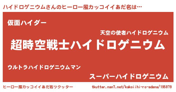 | 男性向けラノベタイトル風あだ名 | 『ハイドロゲニウムスレイヤー』 |