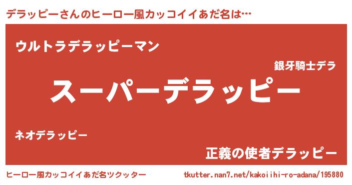 | 男性向けラノベタイトル風あだ名 | 『デラッピーの憂鬱』 |