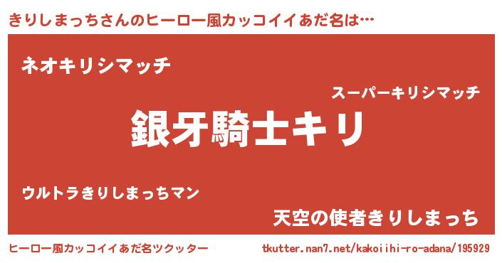 | 男性向けラノベタイトル風あだ名 | 『ダンジョンにきりしまっちを求めるのは間違っているだろうか』 |