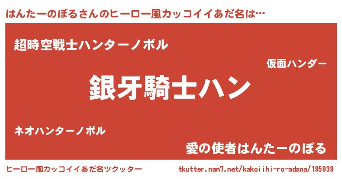 | 男性向けラノベタイトル風あだ名 | 『はんたーのぼるの嫁は女の子じゃないと思った?』 |