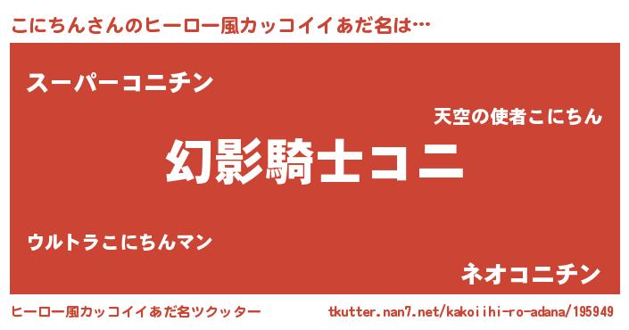 | 男性向けラノベタイトル風あだ名 | 『こにちんの嫁は女の子じゃないと思った?』 |