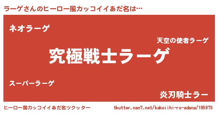 | ヘコむあだ名 | 『ラーゲ(遠い目)』『ラーっぺ』 |