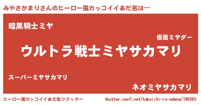 | ヘコむあだ名 | 『みや太郎』『みやさかまり(震え声)』 |