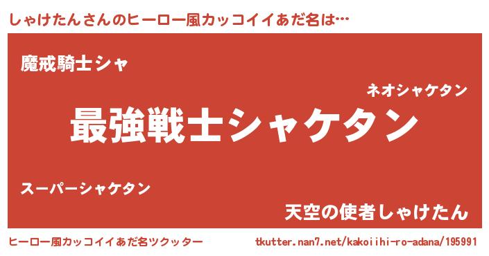 | 男性向けラノベタイトル風あだ名 | 『しゃけたん~年齢イコール彼女いない歴の魔法使い~』 |