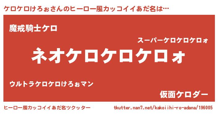 | 男性向けラノベタイトル風あだ名 | 『ケロケロけろぉという概念が存在しない退屈な世界 』 |