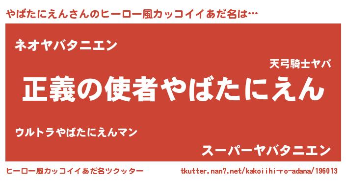 | 男性向けラノベタイトル風あだ名 | 『おまえをオタクにしてやるから、俺をやばたにえんにしてくれ! 』 |