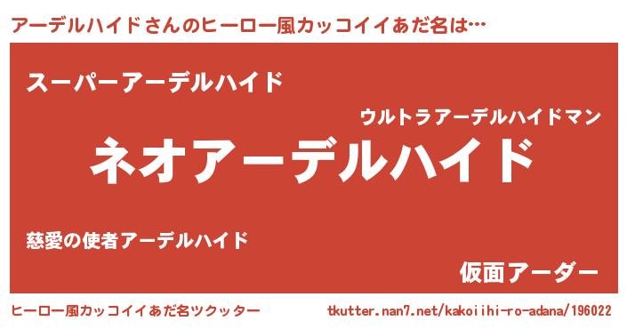 | 意味不明あだ名 | 『永久保存アーデルハイド』 |