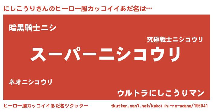 | 男性向けラノベタイトル風あだ名 | 『にしこうりに滅ぼされるだけの簡単なお仕事です』 |