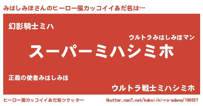 | 欧米人風あだ名 | 『みはしみほ・ステッグマイヤー』 |
