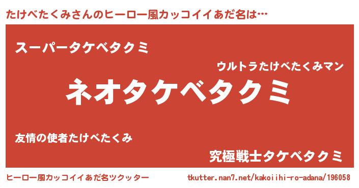 | 意味不明あだ名 | 『永久保存たけべたくみ』 |