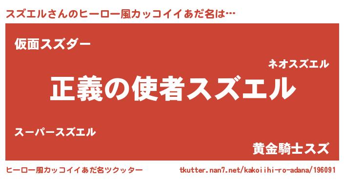男性向けラノベタイトル風あだ名 | 『スズエルスレイヤー』 |