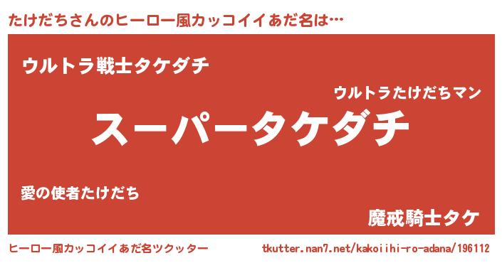 | ヘコむあだ名 | 『たけにー』『たけっ子』『なまこ酢』 |