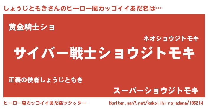 | 男性向けラノベタイトル風あだ名 | 『転生したらしょうじともきだった件』 |
